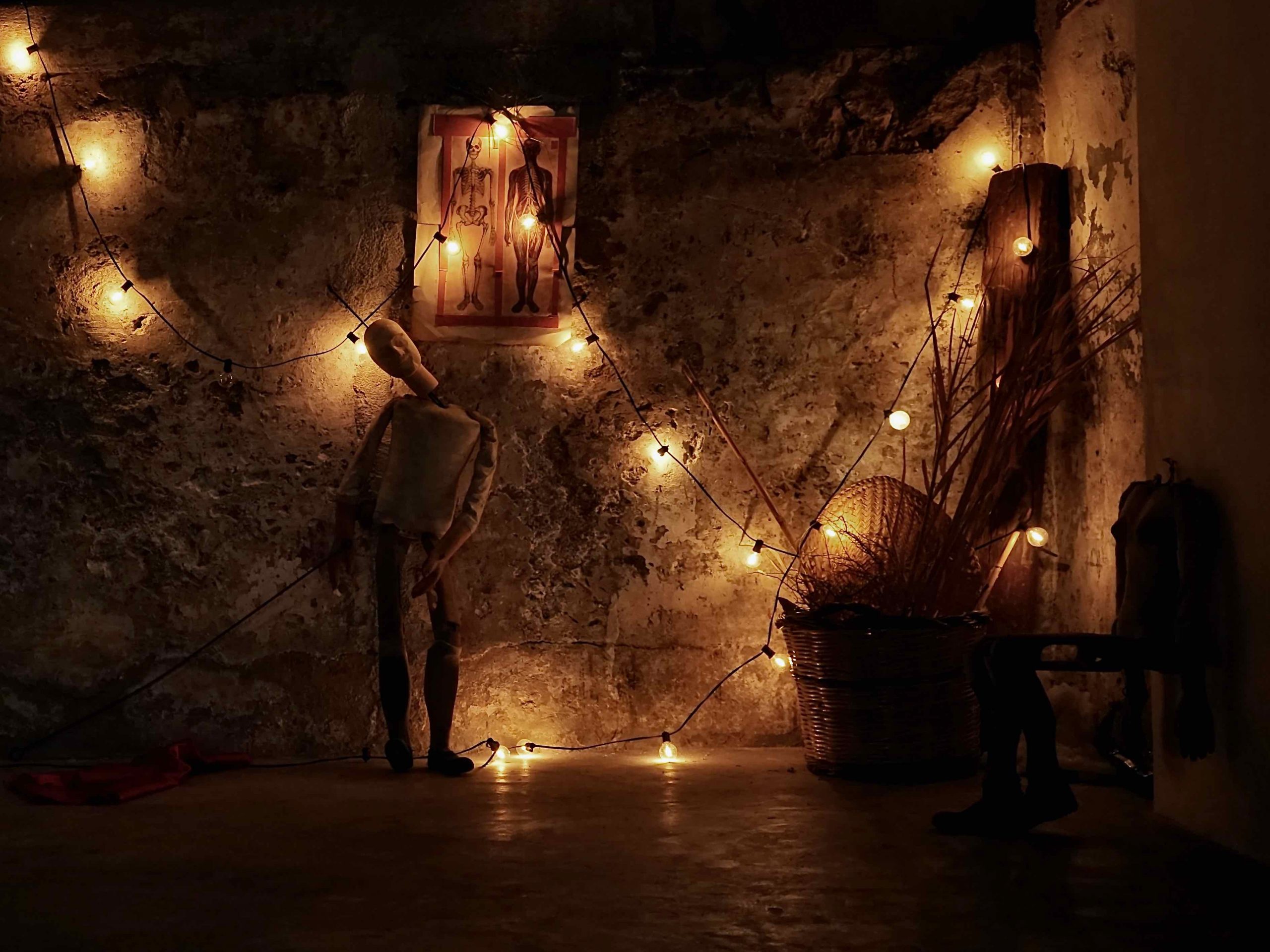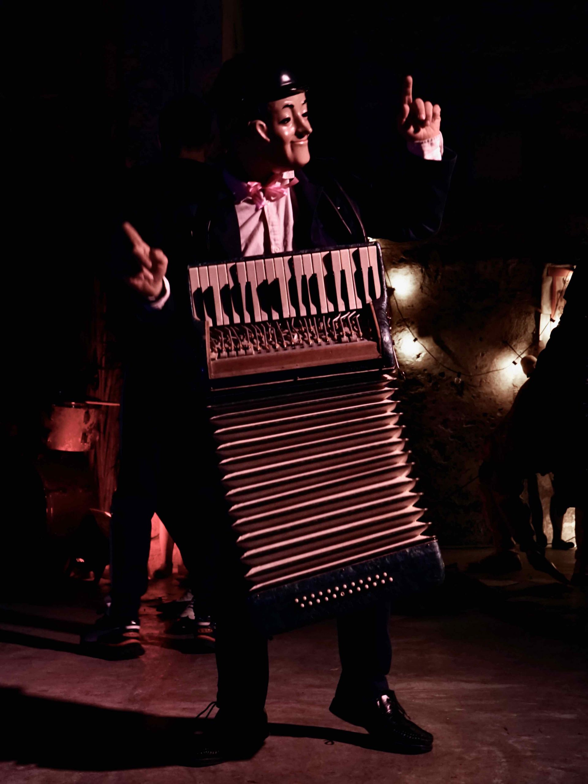 The actors of this mad company look at it, question it, and curse it because, deep down, they love it and cannot do without it. They don’t want to physically go to the Moon but instead summon it so its rays can bathe their skin and make them fall in love once again because they know that to love is the only true destiny we are called to. Mab, the queen of the fairies, dwells on that satellite and from there creeps into their dreams on a festive night when Theater forces them to eternally relive themselves in a kind of dance hall where the eternal music of Love and Death plays the leading role. Whether they are Romeo and Juliet, Leopardi, Chopin, or Pirandello, at this point, it hardly matters.